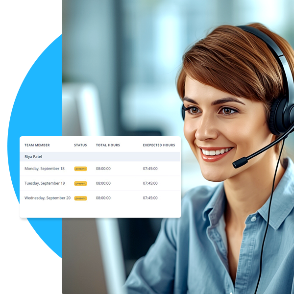 HiveDesk tracks 100+ performance metrics including: agent productivity scores, handle time, first call resolution, customer satisfaction (CSAT), quality scores, attendance and punctuality, break adherence, schedule compliance, escalation rates, and revenue per agent. All metrics are customizable and can be configured to match your specific KPIs and business objectives.